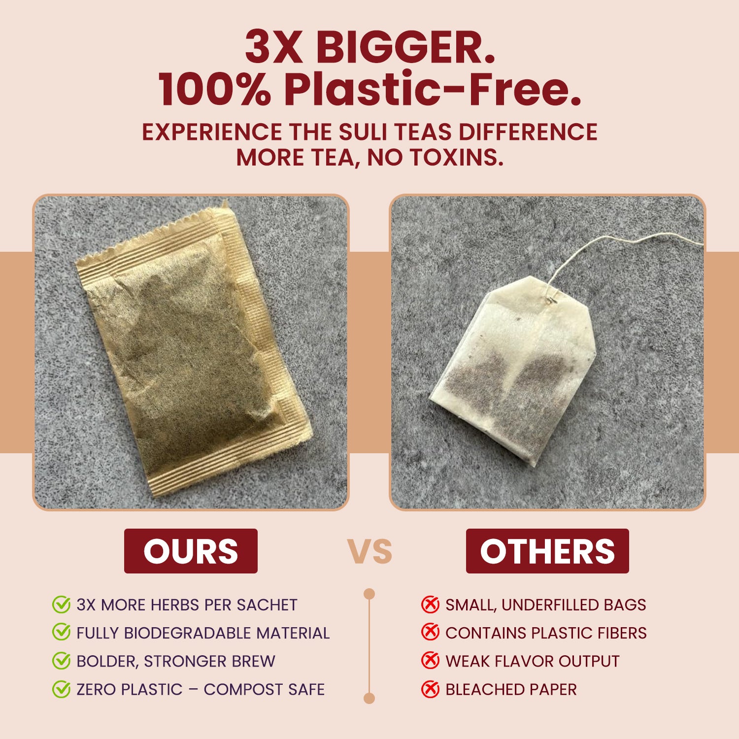 Suli Teas are free from all common allergens such as gluten, dairy, nuts, coconut, eggs, corn, soy, and shellfish.